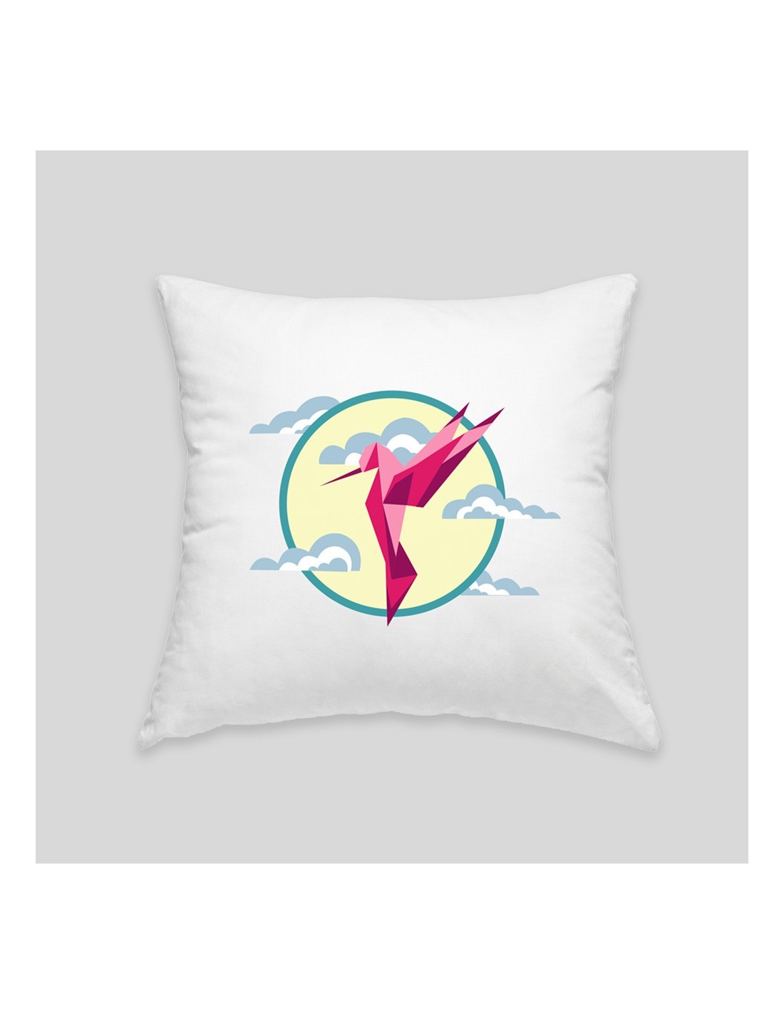 The hummingbird cushion will add a graphic and colorful touch to your sofa, armchair or bed. Create a modern and zen atmosphere that inspires relaxation. Cover 100% cotton, machine washable at 60° / Filling 100% hypoallergenic polyester.
